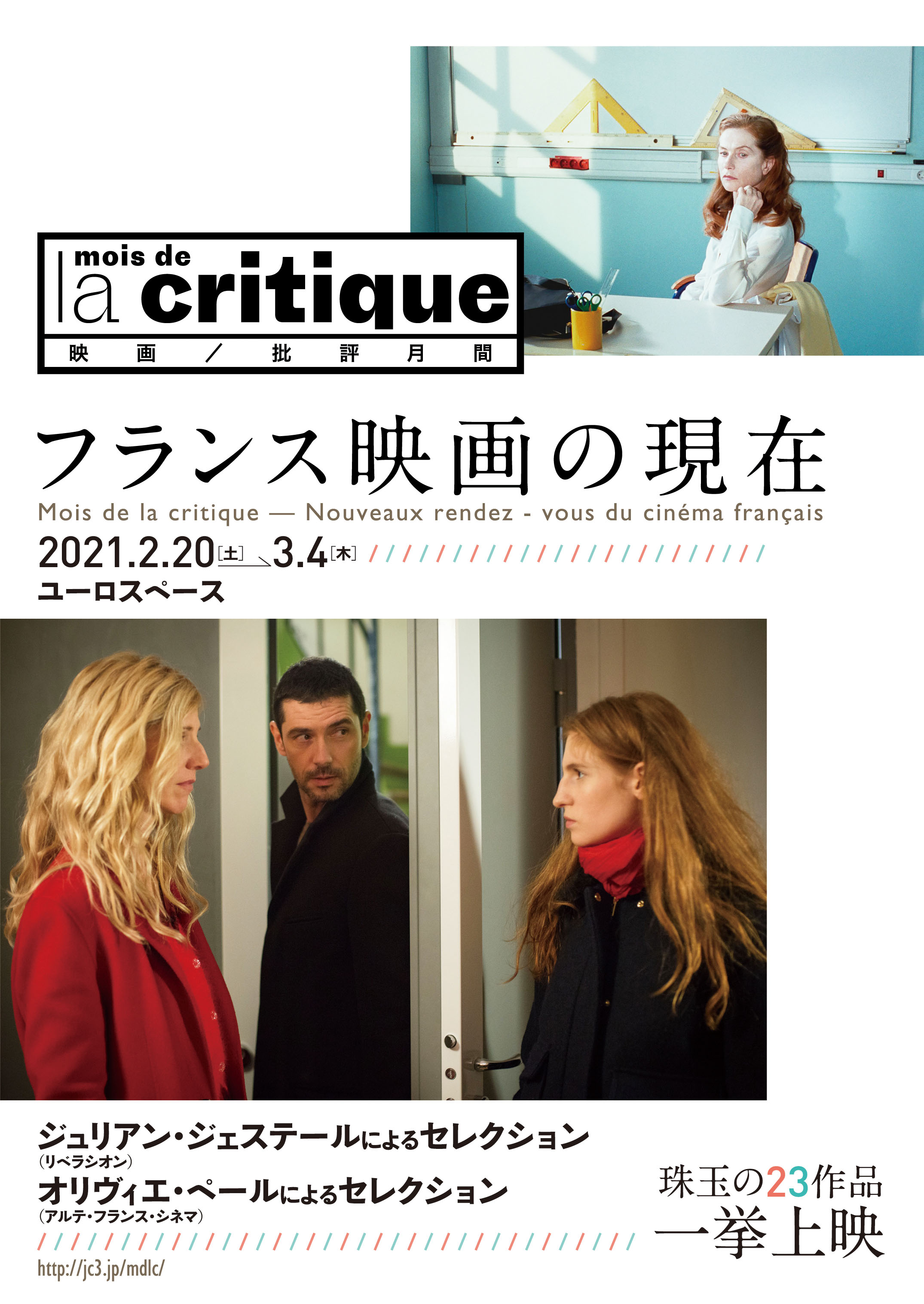 アンスティチュ・フランセが、フランスの批評家、専門家、プログラマーらと協力し、最新のフランス映画 を選りすぐって紹介する特集「映画批評月間~プランス映画の現在」。Vol.01では文化欄が充実しているので有名なフランスの大手日刊紙「リベラシオン」のジュリアン・ジュステール、vol.02では、世界中の才能ある映画作家たちの作品を見出し、支援している「アルテ・フランス・シネマ」のオリヴィエ・ペールが選定を担当しました。今回の上映では、vol.01,02で上映された新旧のフランス映画、珠玉の23本を一挙上映します。